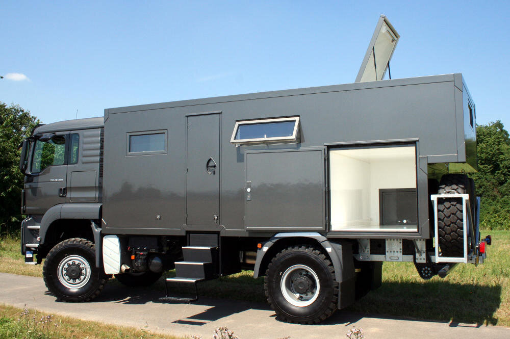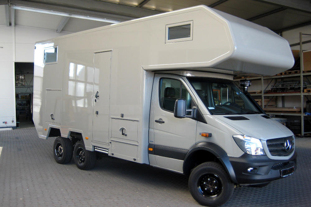 Die Abmaße der Kabine sowie der Türen und Klappen sind durch unsere eigene Produktion der GFK-Sandwichplatten nahezu frei wählbar. Weitere Informationen zu unseren Reise- und Fernreisemobilkabinen finden Sie unter: Kabinenbau
