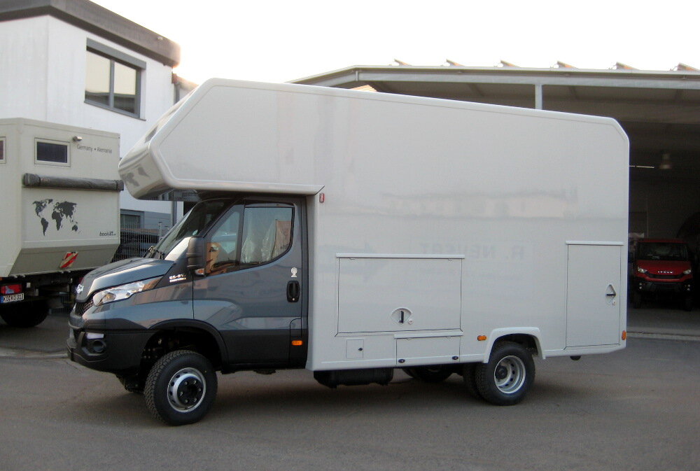 Häufig erfolgt der Einbau von Garagenabtrennungen und Nasszellen in GFK-Sandwichbauweise. Ebenso kann der Einbau der Fenster und Dachluken auf Wunsch durch uns erfolgen. Unser Angebotsspektrum beginnt ab der Transporterklasse bis hin zu schweren Nutzfahrzeugfahrgestellen.