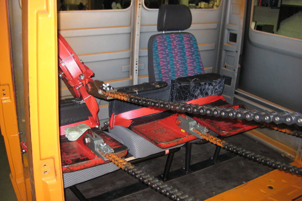 Alle unsere Fahrzeuge können mit Sicherheitsgurten an den Sitzplätzen in der Wohnkabine ausgestattet werden. Die Sitzbefestigung wurde vom TÜV Rheinland in aufwändigen eigenen Versuchsreihen geprüft und zertifiziert.